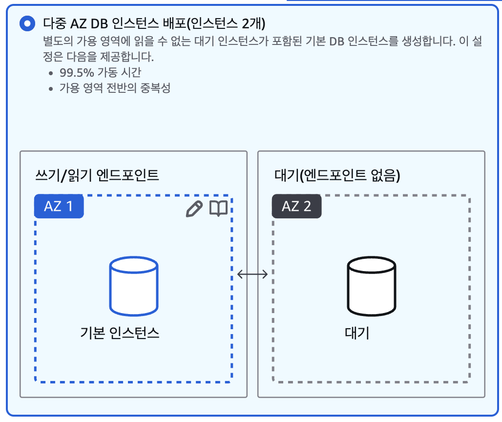 | Standby (대기 인스턴스) | Read Replica (읽기 복제본) | |