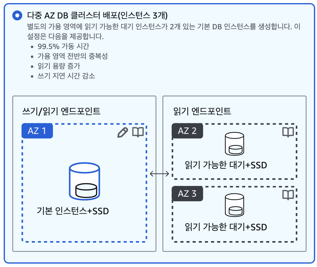 2. 읽기 가능한 대기가 2개인 Amazon RDS 다중 AZ → 클러스터링으로 구성된 경우